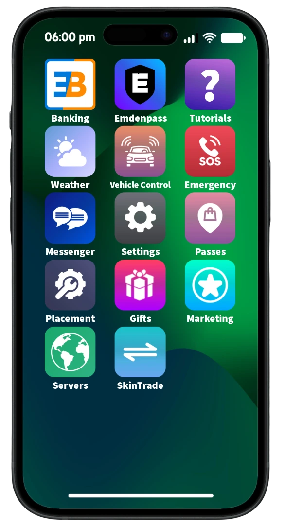 The Phone is a gameplay feature in Emergency Emden that allows players to perform a variety of actions, such as controlling their vehicle or calling emergency services, through various apps on the phone. While most apps are visible at all times, some apps are only visible if the player has a specific job. Likewise, the Crime app is only visible if the player has a wanted level.